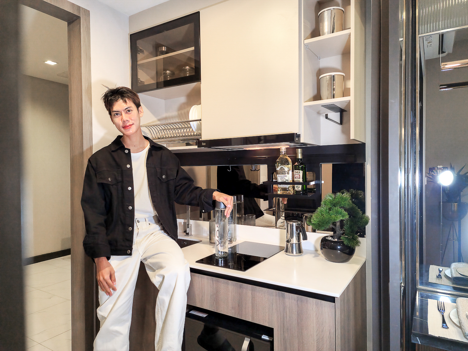 ส่วนแรกที่เข้ามาจะเป็นส่วนห้องครัวปิดอยู่ด้านหน้า โครงการให้ชุดครัวบิวอิ้น พร้อม ฮอป ฮูด ซิงค์ และ Back Splash ก็ได้เป็นกระจกแบบห้องตัวอย่าง สามารถทำความสะอาดได้ง่าย