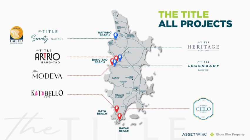 และ “THE TITLE ARTRIO BANG-TAO” เป็นโครงการ Leisure Residences สูง 7 ชั้น จำนวน 3 อาคาร และ Pet-Friendly อีก 1 อาคาร รวม 435 ยูนิต ตั้งอยู่บนที่ดินประมาณ 6 ไร่ ติด Porto de Phuket ด้วยคอนเซปต์ Live Artfully, Where Creative Retreat Meets Style ถ่ายทอดความงามของศิลปะในทุกรายละเอียดของโครงการ ภายในอาคารมีห้องพัก Fully Fitted ทั้งแบบ 1 Bedroom แบบ 2 Bedroom และ Duplex ขนาด 28-132 ตร.ม. พร้อมส่วนกลางมากกว่า 41 รายการ ทั้ง Outdoor เช่น Feature Art Wall, Sculptural Playground, Waterfall, Floating Pool Terrace และ Indoor อาทิ Health Care, Live Studio, Library Lounge, Kid Space, Onsen, Boxing Area รวมถึงโซนสำหรับสัตว์เลี้ยง Pet Grooming และ Pet Pool & Playground ในอาคาร Pet-Friendly ราคาเริ่มต้น 4.23-19.67 ล้านบาท