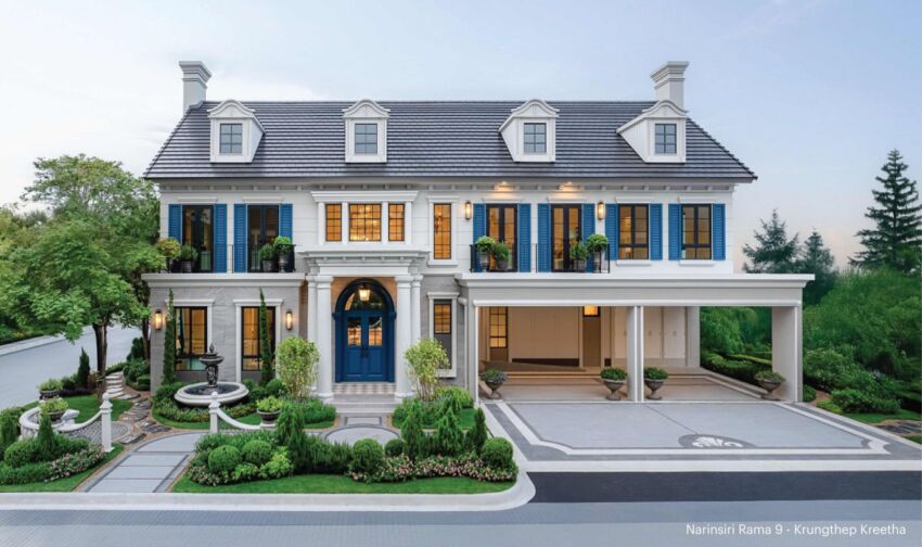 ออกแบบภายใต้คอนเซ็ปต์ “Grandeur Garden Serenity” ดด้วยการติดตั้ง Georgian Chimney ดีไซน์ปล่องไฟที่เป็น เอกลักษณ์ของบ้านในยุค GeorgianSignature Entrance โถงทางเข้าบ้านพร้อมPorchที่สวยงาม และได้จัดเตรียมระบบรองรับการติดตั้งเครื่องชาร์จสำหรับรถยนต์ไฟฟ้าให้กับบ้านทุกหลัง