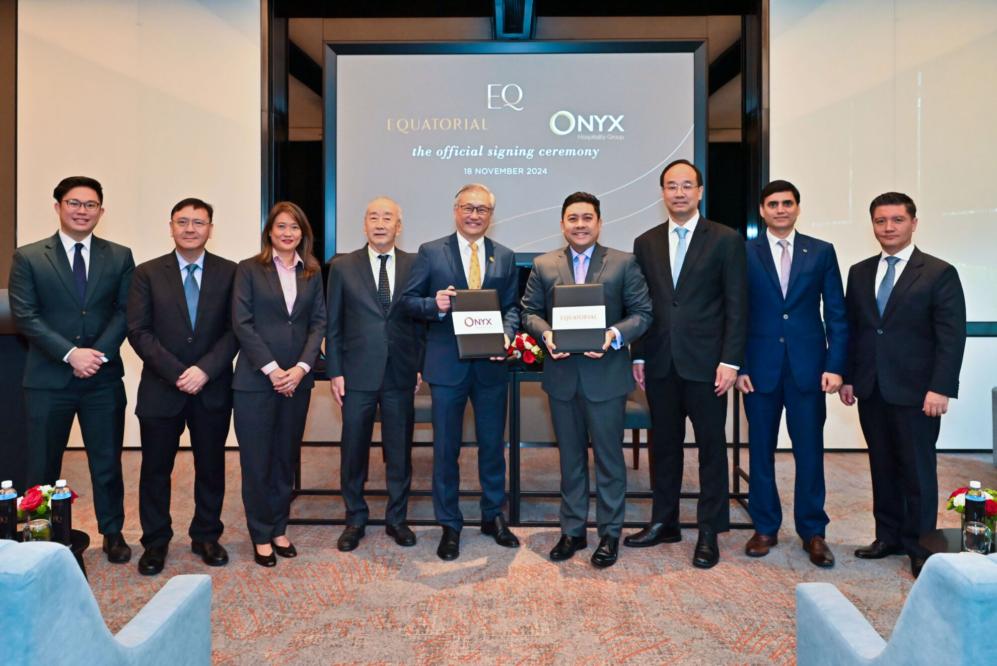 ออนิกซ์ ฮอสพิทาลิตี้ กรุ๊ป (ONYX Hospitality Group) บริษัทชั้นนำด้านการบริหารโรงแรม รีสอร์ต เซอร์วิสอพาร์ตเมนต์ และที่พักอาศัยระดับหรู รวมถึงธุรกิจฮอสพิทาลิตี้อื่นๆ ที่เกี่ยวข้อง ภาคภูมิใจที่จะประกาศถึงการจับมือร่วมธุรกิจครั้งสำคัญกับ อีเควทอเรียล กรุ๊ป (Equatorial Group) จากประเทศมาเลเซีย เพื่อร่วมพัฒนาโครงการ “อีคิว ภูเก็ต” (EQ Phuket) ที่พักสุดหรูแห่งใหม่ในภูเก็ต โดยคาดว่าจะเปิดให้บริการได้ในปี 2571 โครงการนี้นับเป็นก้าวสำคัญในการขยายธุรกิจของออนิกซ์ ฮอสพิทาลิตี้ กรุ๊ป อีกทั้งยังเสริมความแข็งแกร่งให้กับแบรนด์ชั้นนำอย่าง อมารี (Amari) โอโซ่ (OZO) ชามา (Shama) และโอเรียนเต็ล เรสซิเดนซ์ (Oriental Residence) การร่วมทุนครั้งนี้นับเป็นการพัฒนาครั้งสำคัญของทั้งสองบริษัท โดยได้รวมเอาแบรนด์อีคิว (EQ) ของอีเควทอเรียล ซึ่งมีรางวัลการันตีมากมายเข้ากับพอร์โฟลิโอที่หลากหลายของออนิกซ์ ฮอสพิทาลิตี้ กรุ๊ป (ONYX Hospitality Group) เข้าไว้ด้วยกัน