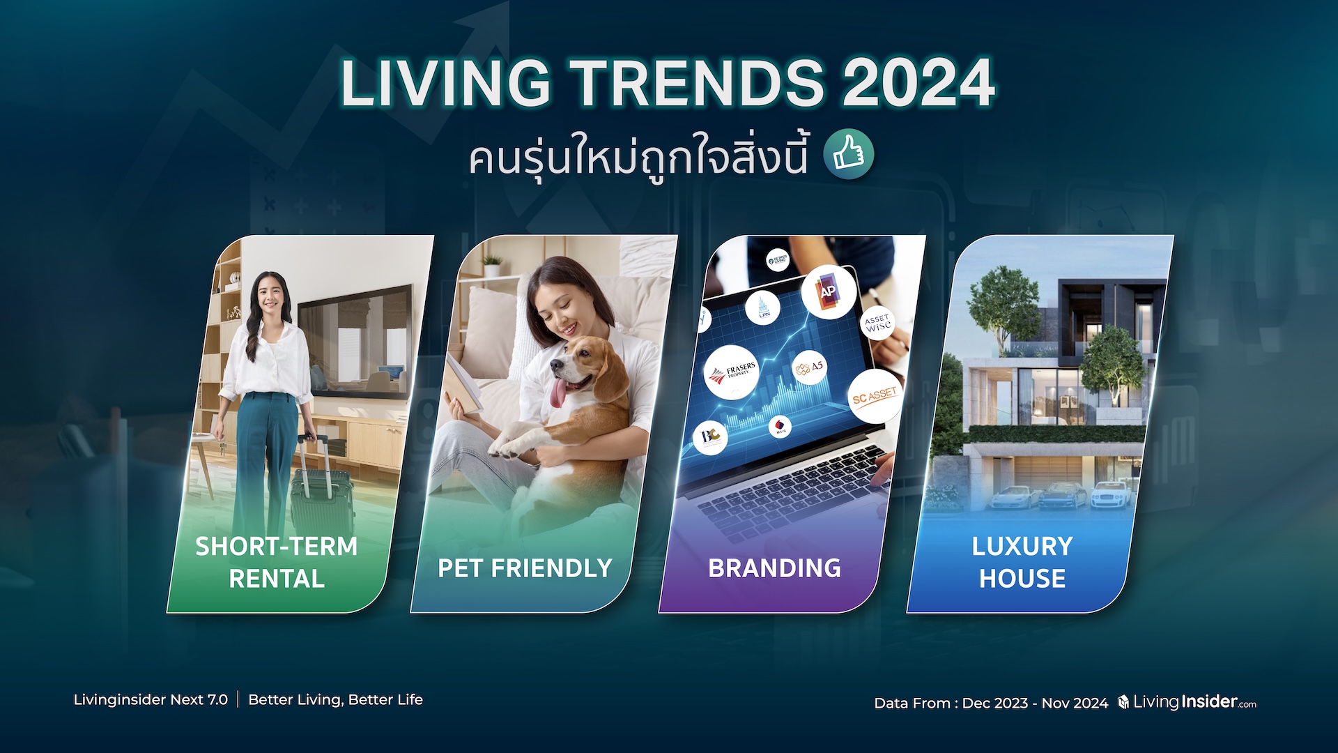“จากสถิติการเข้าชมประกาศต่างๆ ทำให้มองเห็นเทรนด์ภาพรวมของอสังหาฯ ที่พบว่า การเช่าที่อยู่อาศัยระยะสั้นได้รับความนิยมอย่างต่อเนื่อง เนื่องจากคนส่วนใหญ่ไม่อยากผูกมัดและต้องการอิสระในการใช้ชีวิตที่มีความยืดหยุ่นมากขึ้น สะท้อนผ่านการประกาศให้เช่าที่มีอัตราการเติบโตถึง 66% และการค้นหาประกาศที่เพิ่มขึ้น 14% จากปี 2566 โดยเฉพาะการเลือกที่อยู่อาศัยที่สอดคล้องกับกระแส Workation หรือการทำงานในรูปแบบดิจิทัล ซึ่งเป็นผลมาจากการปรับตัวในช่วงสถานการณ์