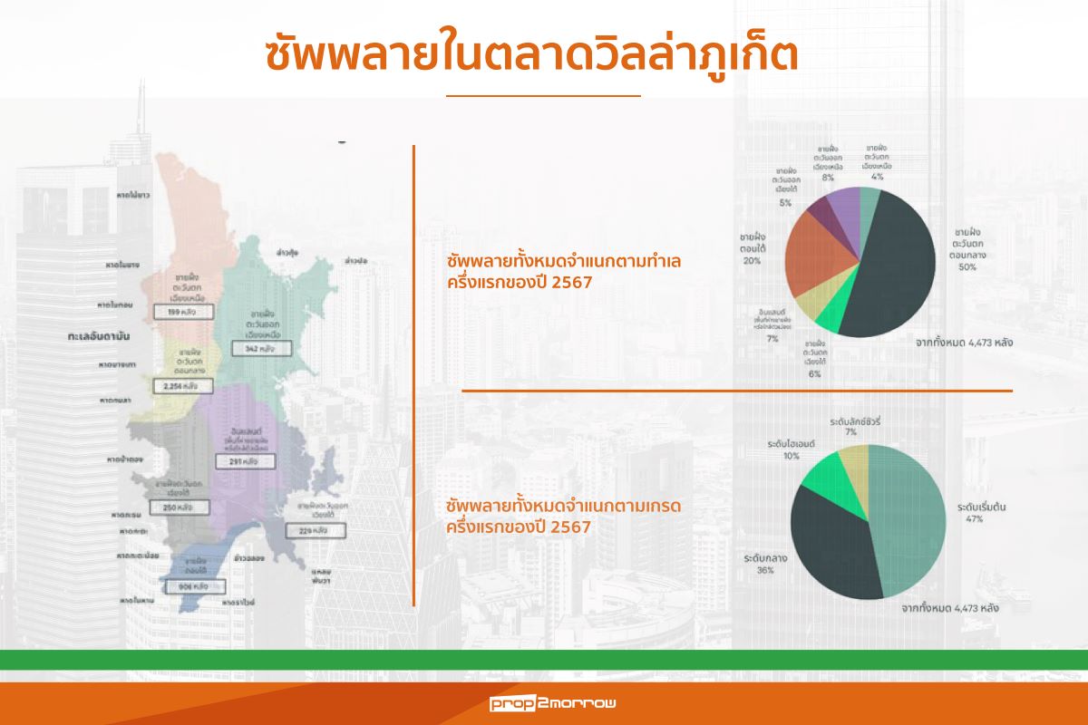 โดยเฉพาะตลาดวิลล่าบนชายฝั่งตะวันตกมีจำนวนซัพพลายปัจจุบันและซัพพลายที่จะเพิ่มขึ้นในอนาคตสูงที่สุดเมื่อเทียบกับพื้นที่อื่น ๆ จากครึ่งแรกของปี 2567 ผู้พัฒนาได้เปิดตัววิลล่าทั้งหมด 679 หลังจาก30โครงการใหม่ ซึ่งเพิ่มขึ้น 57.9% เมื่อเทียบกับครึ่งหลังของปี 2566 และเพิ่มขึ้น 60.9% เมื่อเทียบกับครึ่งแรกของปี 2566 ทั้งนี้ผู้พัฒนาโครงการยังคงมองหาที่ดินในทำเลทองอย่างต่อเนื่อง โดยมีแผนการขยายโครงการใหม่ในช่วงปลายปีซึ่งเป็นช่วงไฮซีซัน