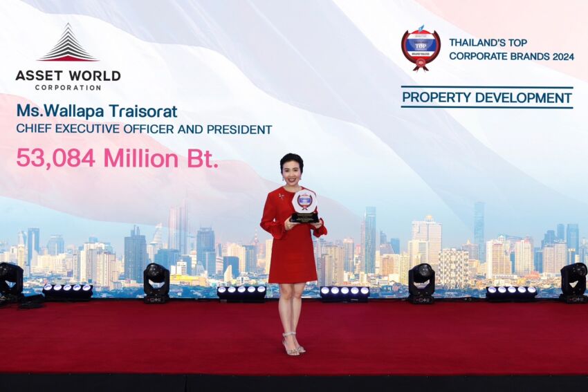 วัลลภา ไตรโสรัส ประธานเจ้าหน้าที่บริหารและกรรมการผู้จัดการใหญ่ บริษัทแอสเสท เวิรด์ คอร์ป จํากัด (มหาชน) กล่าวว่า บริษัทได้พัฒนาโครงการระดับแลนด์มาร์กในรูปแบบของ AWC’s Lifestyle Destination มากมาย พร้อมนำความเป็นเอกลักษณ์หรือ Brand DNA ของ AWC ถ่ายทอดผ่านโครงการที่ได้เปิดตัวตลอดปี 2567 ที่ผ่านมา การได้รับรางวัล Thailand’s Top Corporate Brands ต่อเนื่องอีกครั้งในปีนี้ จึงเป็นเครื่องยืนยันถึงความมุ่งมั่นของบริษัทในการให้ความสำคัญกับการสร้างคุณค่าและส่งต่อความสุขให้นักท่องเที่ยวทั้งในไทยและทั่วโลก