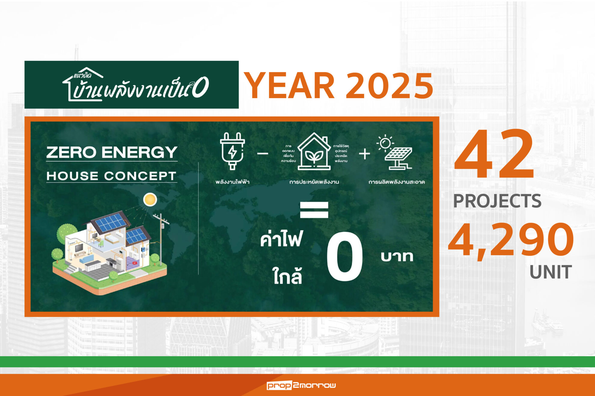 รวมทั้งยังเดินหน้าพัฒนาแนวคิดบ้านพลังงานเป็นศูนย์ (Zero Energy House concept) ในการพัฒนา 42 โครงการ รวมจำนวน 4,290 ยูนิตเพื่อลดการปล่อยคาร์บอนได้ไม่ต่ำกว่า 6,993 ตันคาร์บอนต่อปี ล่าสุดได้พัฒนาที่อยู่อาศัยแห่งอนาคต บ้าน ZEH (Zero Energy House ) New Model บ้านเดี่ยวติดโซลาร์รูฟพร้อมแบตเตอรี่ กับ Segment High Class “Grand Serie” โดยเตรียมเปิดตัวครั้งแรกที่โครงการ เสนา พาร์ค แกรนด์ กม. 9 มูลค่าโครงการ 2,400 ล้านบาท พร้อมเปิดตัวบริการ V-Move, Smart Mobility concept นวัตกรรมที่ใช้รถพลังงานไฟฟ้าเชื่อมต่อกับระบบขนส่งสาธารณะ โดยตั้งเป้าจะนำไปใช้ใน 24 โครงการ แบ่งเป็น คอนโดมิเนียม 20 โครงการ และบ้าน 4 โครงการ เพื่อลดการปล่อยคาร์บอนได้ไม่ต่ำกว่า 11,720 ตันคาร์บอนต่อปี เทียบเท่าการปลูกต้นไม้ 1,172,006 ต้น