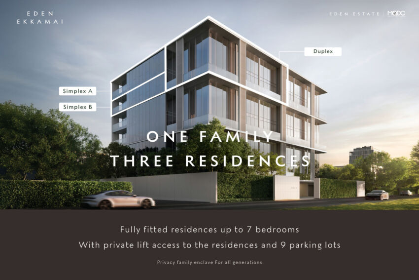 บริษัท อีเดน เอสเตท คอร์ปอเรชั่น จํากัด ในฐานะผู้พัฒนาอสังหาริมทรัพย์ระดับอัลตร้าลักซ์ชัวรี โครงการ อีเดน เอกมัย (EDEN EKKAMAI) โครงการที่อยู่อาศัยในรูปแบบโรว์ไรส์ (Low-Rise) กับจุดเด่นในการเป็น Ultra-Luxury, Low-Density รายแรกของไทย เผยความคืบหน้าส่งดีไซน์ห้องชุดหรู พื้นที่ใช้สอยใหญ่ที่สุดใจกลางเอกมัย-ทองหล่อ ภายใต้แนวคิด One Family, Three residences ประกอบด้วยห้องชุดแบบ 1 Duplex และ 2 Simplex รวมพื้นที่ 777 ตร.ม. เพื่อครอบครัวขนาดใหญ่ Multi-Generational Living Residence ตอบไลฟ์สไตล์ ครอบครัว 3 เจเนอเรชันให้ใช้เวลาและพื้นที่ร่วมกัน พร้อมฟังก์ชันการใช้งานแบบ fully-fitted ด้วยชุดครัวและเครื่องใช้ไฟฟ้าหรูครบครัน ในราคาเริ่มต้น 288 ล้านบาท