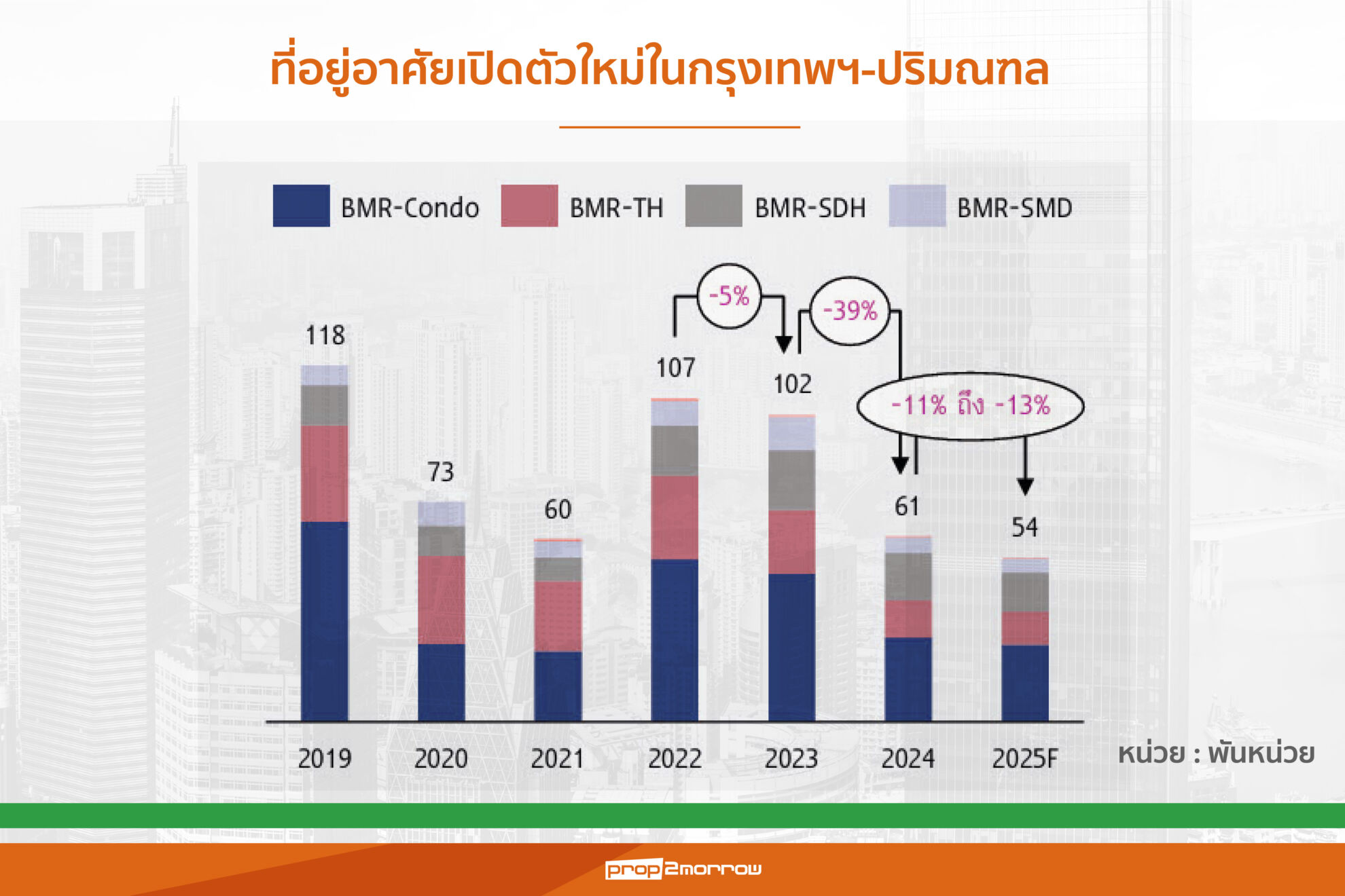 ส่งผลให้การเปิดโครงการใหม่ในปี 2568 ยังมีแนวโน้มหดตัวต่อเนื่อง ท่ามกลางสถานการณ์กำลังซื้อในประเทศที่ยังซบเซา โดยเฉพาะในพื้นที่กรุงเทพฯ และปริมณฑลมีแนวโน้มหดตัวประมาณ -9% ถึง -11% โดยยังเป็นการเน้นเปิดโครงการระดับบน ที่มีกำลังซื้อสูงเป็นหลัก ท่ามกลางภาวะต้นทุนการก่อสร้างที่ยังอยู่ในระดับสูง และสินค้าคงเหลือในตลาดที่เพิ่มขึ้น โดยเฉพาะการเปิดโครงการบ้านเดี่ยวและบ้านแฝดราคาสูงที่ต้องมีความรอบคอบมากขึ้น เนื่องจากมีหน่วยเหลือขายสะสมที่เพิ่มขึ้นมากตั้งแต่ปี 2565-2567 ส่วนการเปิดโครงการระดับราคาปานกลาง-ล่าง ยังคงต้องใช้ความระมัดระวังสูงเช่นเดียวกับปีที่ผ่านมา