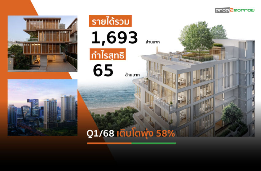 พสุ ลิปตพัลลภ กรรมการบริหาร บริษัท พราว เรียล เอสเตท จำกัด (มหาชน) เปิดเผยว่า ผลประกอบการไตรมาส 1/2568 บริษัทมีรายได้ 1,693 ล้านบาท เพิ่มขึ้นจากช่วงเดียวกันของปีก่อนที่มีรายได้ 1,071 ล้านบาท หรือ เพิ่มขึ้น 58% และมีกำไรสุทธิอยู่ที่ 65 ล้านบาท