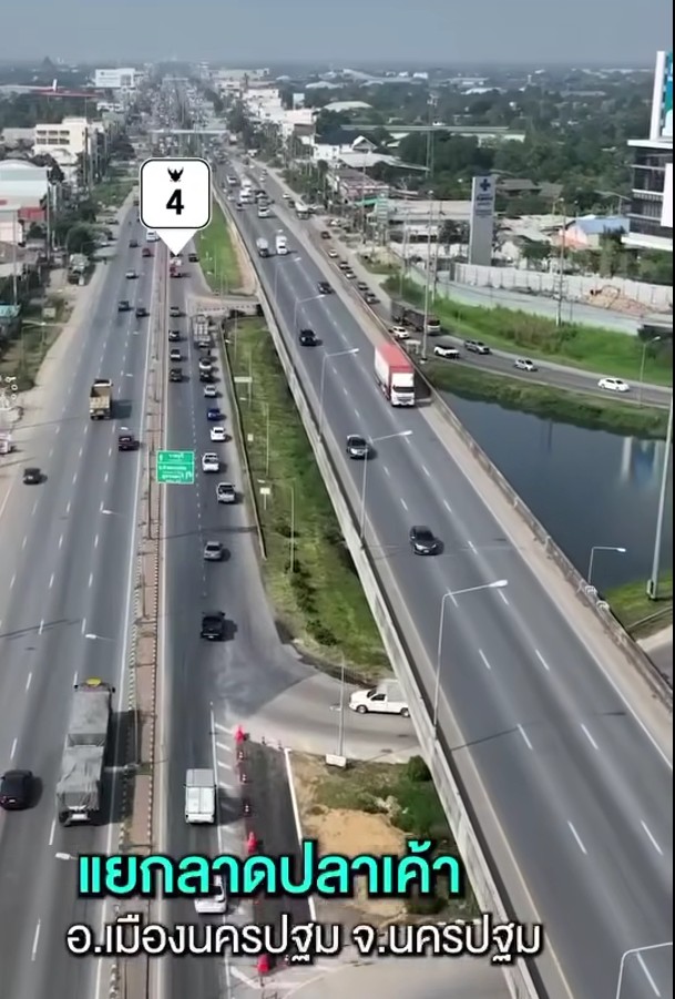 - จุดที่สาม หลังจากใช้เส้นถนนมาลัยแมน จนผ่านสัญญาณไฟจราจรทั้งหมด 3 จุด ถึงจุดที่สามให้เลี้ยวขวาเพื่อเชื่อมต่อไปยัง ทางหลวงหมายเลข ทล.3524 จนถึงทางแยกลาดปลาเค้า เพื่อที่จะไปเชื่อมต่อกับ ทางหลวงหมายเลข 4 ถนนเพชรเกษม ซึ่งบริเวณนี้ยังอยู่ในพื้นที่ อ.เมืองนครปฐม จ.นครปฐม