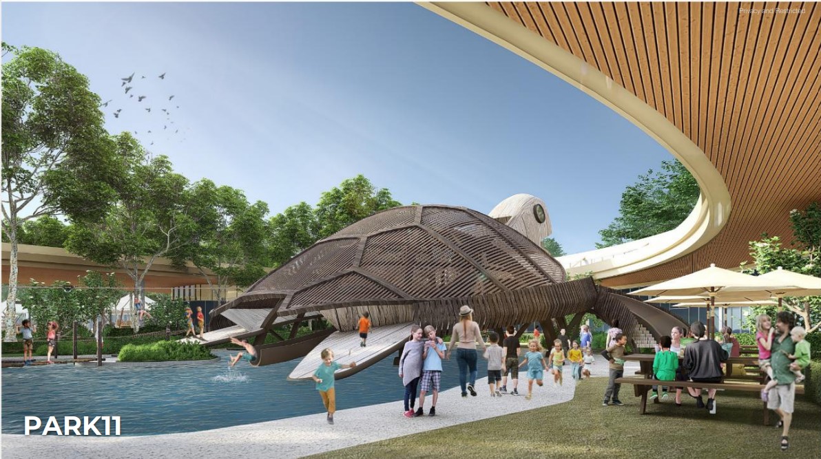 หนึ่งในไฮไลต์สำคัญของ PARK11 คือโซน “Get Growing” สวนสนุกเชิงการเรียนรู้ที่เปิดโอกาสให้เด็กๆ ได้เรียนรู้ผ่านการเล่นอย่างสร้างสรรค์ในธรรมชาติ ไม่ว่าจะเป็นกิจกรรมปลูกผัก การทำของเล่นจากวัสดุธรรมชาติ เวิร์กช็อปวิทยาศาสตร์ สนามปีนป่าย กิจกรรมกลางแจ้ง และกิจกรรมร่วมกันระหว่างผู้ปกครองกับบุตรหลาน พื้นที่แห่งนี้ยังเน้นการออกแบบอย่างเป็นมิตรต่อสิ่งแวดล้อม โดยเลือกใช้วัสดุธรรมชาติและรีไซเคิล การใช้พลังงานอย่างมีประสิทธิภาพ และระบบจัดการขยะที่ยั่งยืน