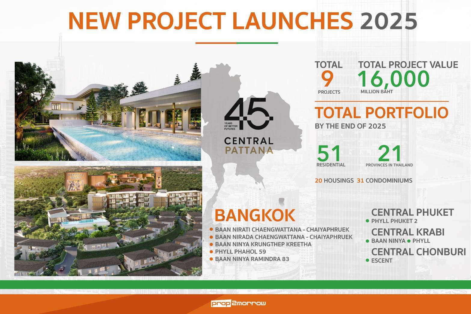 Central Pattana Residence เติบโตต่อเนื่องตลอด 10 ปี โดยปี 2568 เดินหน้าเปิดตัวโครงการใหม่ทั้งสิ้น 9 โครงการทั้งแนวราบและแนวสูง มูลค่ารวม 16,000 ล้านบาท นำโดยโครงการบ้านลักชัวรี่ “บ้านนิรดา แจ้งวัฒนะ-ชัยพฤกษ์” เจาะทำเลเมืองขยาย พร้อมเตรียมเปิดตัวโครงการทั้งบ้านและคอนโดฯ ระดับ Super Premium ในโครงการมิกซ์ยูสเซ็นทรัล กระบี่ และเตรียมเปิดตัวคอนโดฯ PHYLL Phuket 2 รับแผนขยาย Luxury Zone ของเซ็นทรัล ภูเก็ต พร้อมพบกับ Better Deal ยิ่งใหญ่แห่งปีในงาน IMAGINING BETTER LIVING ระหว่างวันที่ 29 พ.ค – 1 มิ.ย. 68 ที่เซ็นทรัลเวิลด์ Central Court ชั้น 1