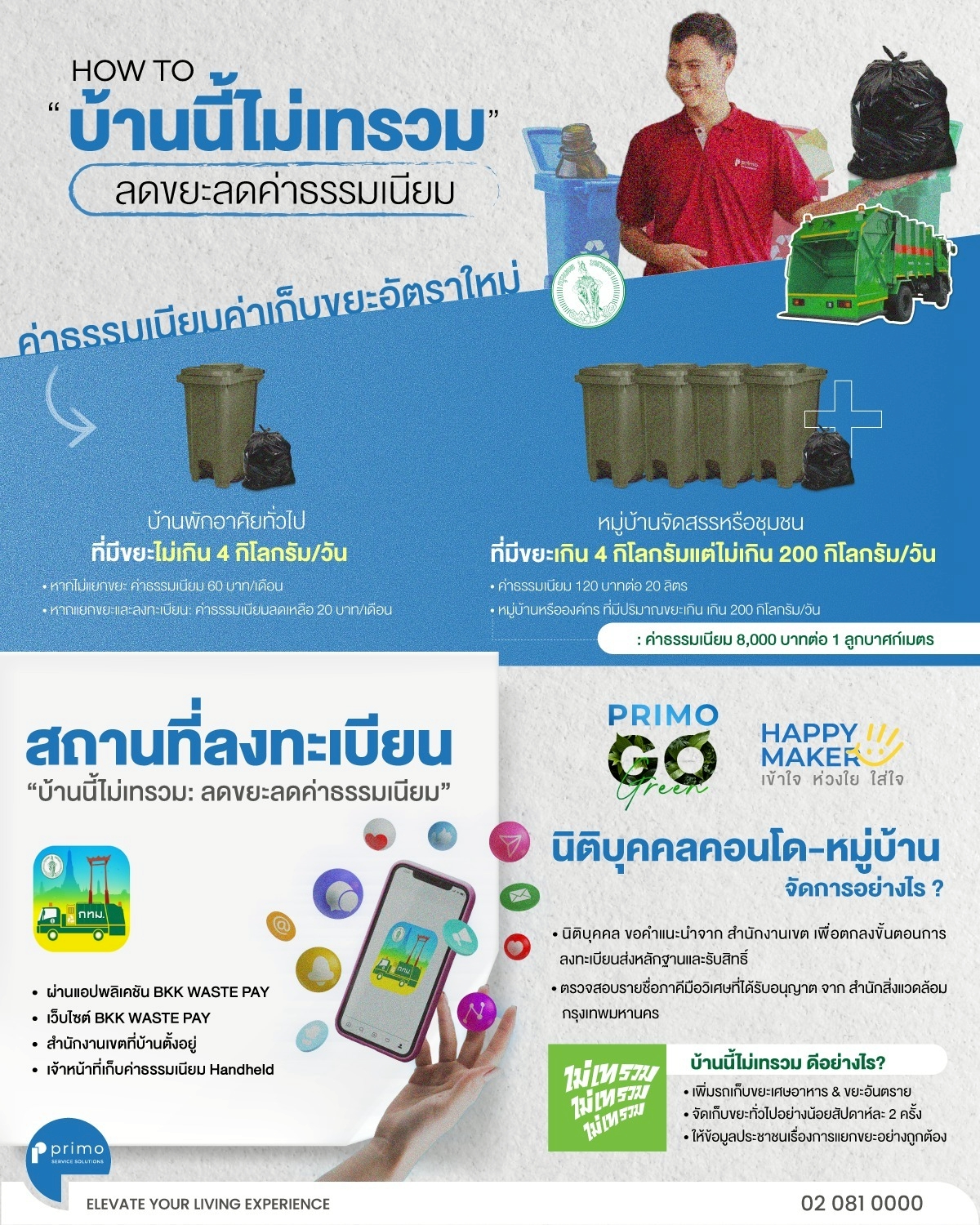 ด้วยความตั้งใจในการสร้างองค์ความรู้และประชาสัมพันธ์ เพื่อให้ลูกบ้านของ พรีโม เข้าร่วมแคมเปญ “พรีโมทิ้งให้ถูก แยกขยะต้องถุงขยะแชมเปี้ยน” คัดแยกขยะก่อนทิ้ง พรีโมจึงจัดกิจกรรมผ่านการสื่อสารในรูปแบบต่าง ๆ เช่น การแจกชุดถุงขยะสำหรับแยกประเภท (ขยะเปียก ขยะรีไซเคิล ขยะทั่วไป) การอบรมพนักงานนิติบุคคล การจัดกิจกรรมรณรงค์ร่วมกับชุมชน รวมถึงการให้คำแนะนำในการคัดแยกขยะภายในครัวเรือนอย่างมีประสิทธิภาพ