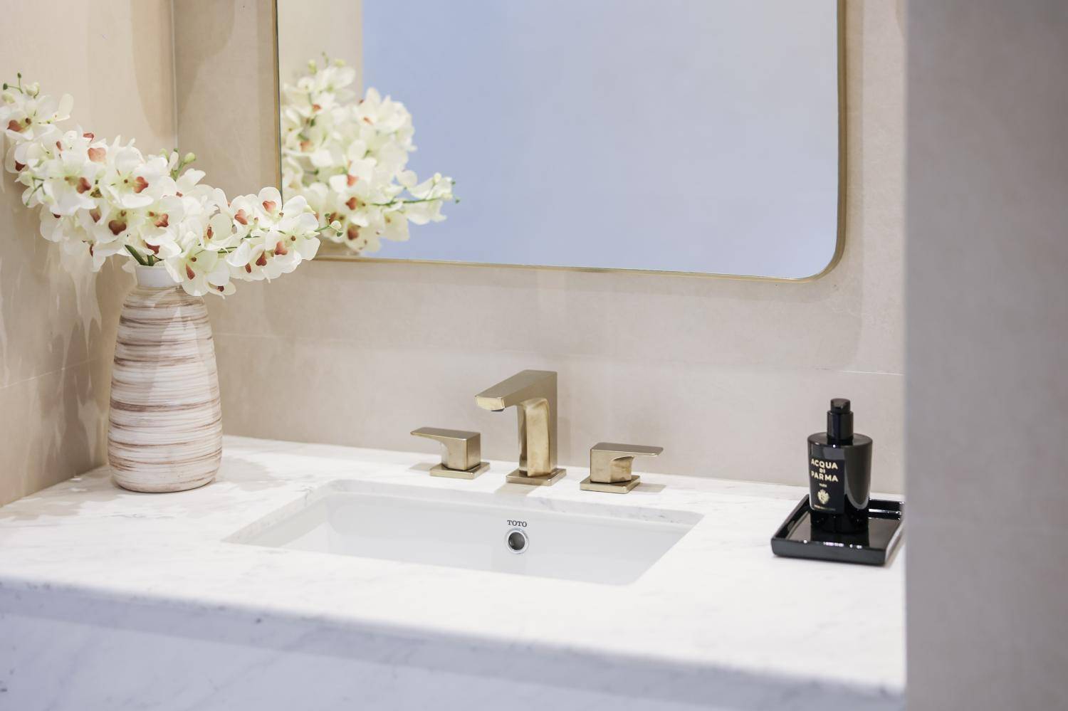 ● ดีไซน์เรียบหรูเข้ากับบ้านสไตล์โมเดิร์นคลาสสิก ผสานความงามและประโยชน์ใช้สอยอย่างลงตัว เสริมสร้างบรรยากาศแห่งการพักผ่อนในห้องน้ำให้เป็นพื้นที่ของความผ่อนคลายและสมดุลทางใจ