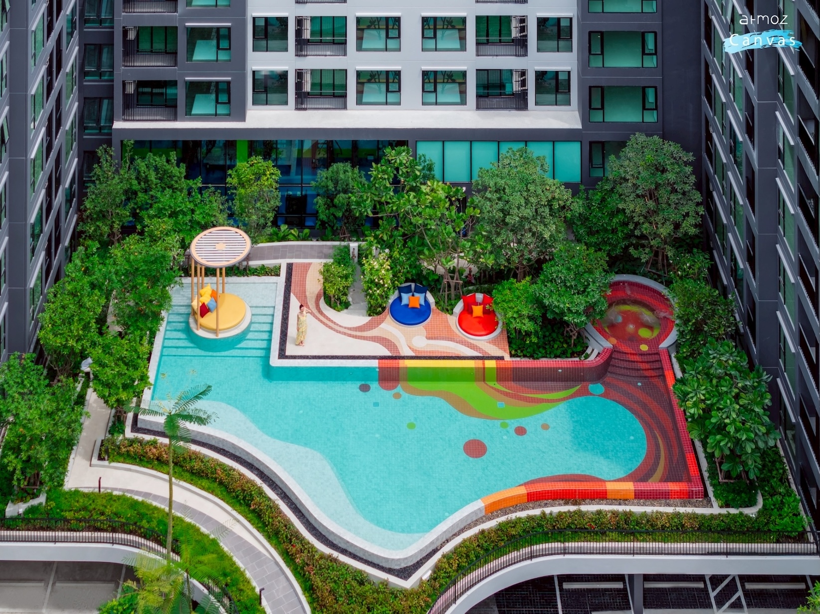 Atmoz Canvas Rayong (แอทโมซ แคนวาส ระยอง) คอนโดสไตล์รีสอร์ต ดีไซน์โมเดิร์นคลาสสิค เป็นโครงการ Low Rise สูง 8 ชั้น จำนวน 3 อาคาร 674 ยูนิต โดดเด่นด้วยแนวคิด ‘Paint Your Livin’ ผสานงานศิลป์ที่สะท้อนตัวตนคนรุ่นใหม่ โครงการตั้งอยู่บนทำเลศักยภาพบนถนนสายหลักทางหลวงหมายเลข 36 ที่เชื่อมต่อทุกจุดหมายปลายทาง ใกล้นิคมอุตสาหกรรมชั้นนำ อาทิ นิคมอุตสาหกรรมมาบตาพุด, สวนอุตสาหกรรม IRPC, นิคมอุตสาหกรรม WHA บ้านค่าย, อาร์.ไอ. ใกล้โรงพยาบาลและสถานศึกษาชั้นนำ อาทิ โรงพยาบาลระยอง โรงพยาบาลจุฬารัตน์ ระยอง โรงเรียนนานาชาติ SISB