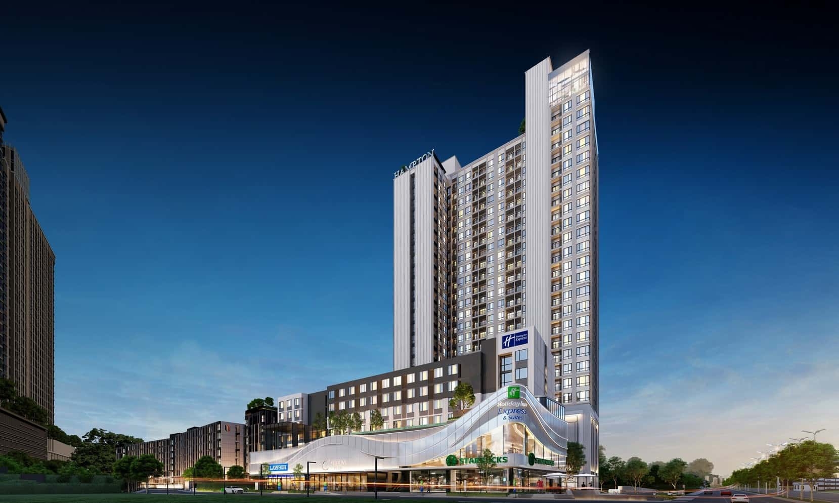 โครงการเดอะ แฮมป์ตัน สวีทส์ ระยอง เป็น Serviced Residences มาตรฐานระดับ 5 ดาว แลนด์มาร์กแห่งใหม่ของการลงทุนบนพื้นที่ EEC ตอบโจทย์ที่อยู่อาศัยและการลงทุนแห่งอนาคต เริ่มต้น 3.19 ล้านบาท* ผลตอบแทนรวม 12%* การันตีผู้เช่า 10 ปี* พร้อมบริหารจัดการโดยทีมงาน บริษัท แฮมป์ตัน โฮเทล แอนด์ เรสซิเดนซ์ จำกัด โดยโครงการเป็นอาคารสูง 29 ชั้น พร้อม Rooftop 1 อาคาร จำนวน 452 ยูนิต ที่มีสิ่งอำนวยความสะดวกมากมาย บนพื้นที่กว่า 2 ไร่ ตั้งอยู่ในบริเวณ โครงการ ออริจิ้น สมาร์ท ซิตี้ ระยอง โครงการมิกซ์ยูสขนาดใหญ่บนพื้นที่ราว 25 ไร่ เป็น Lifestyle Hub แห่งใหม่ของระยอง รวบรวมทั้งยังมีที่พักอาศัย โรงแรม คอมมูนิตี้ มอลล์ ร้านค้า ร้านอาหารมากมาย สิทธิพิเศษสำหรับลูกค้าที่จองภายในเดือนกรกฎาคม 2568 นี้ ทางโครงการ Hampton suites rayong มอบโปรโมชันพิเศษสุด ฟรีค่าส่วนกลางนาน 2 ปี และ Gift set premium จาก Harnn จำนวนจำกัด