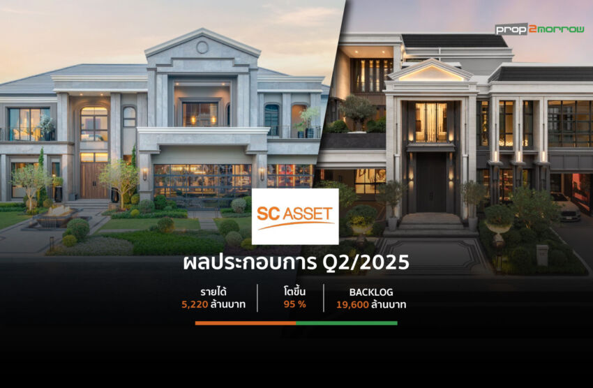 เอสซี แอสเสทกวาดรายได้ Q2/2568 กว่า 5,220 ล้านบาท โต 95%จากไตรมาสก่อนหน้า หลังกลุ่มโครงการบ้านพรีเมียม 20 ล้านบาทขึ้นไปได้รับการตอบรับดี มีการทยอยโอนกรรมสิทธิ์และสร้างรายได้ต่อเนื่อง โชว์ Backlog แกร่ง 19,600 ล้านบาททยอยรับรู้รายได้ต่อเนื่อง ครึ่งปีหลังเปิดโครงการบ้าน-คอนโดใหม่อีก 8 โครงการ มูลค่า 16,400 ล้านบาท