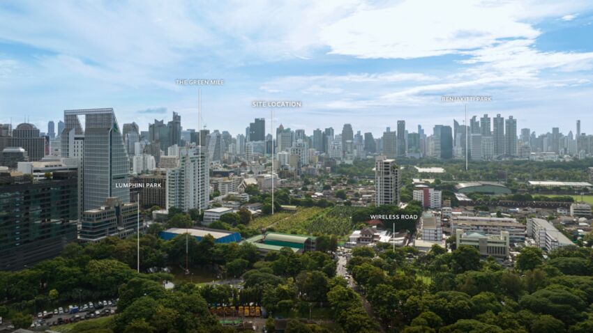 ทำเลที่ตั้งโครงการอยู่บนถนนวิทยุของทำเลไพรม์และที่อยู่อาศัยสุดเอ็กซ์คลูซีฟใจกลางกรุงเทพฯ พร้อมวิวสวนลุมพินีและสวนเบญจกิติแบบพาโนรามา และสิ่งอำนวยความสะดวกทั้งห้างสรรพสินค้าชั้นนำ โรงแรมห้าดาว โรงเรียนนานาชาติ และสถานทูตสำคัญ