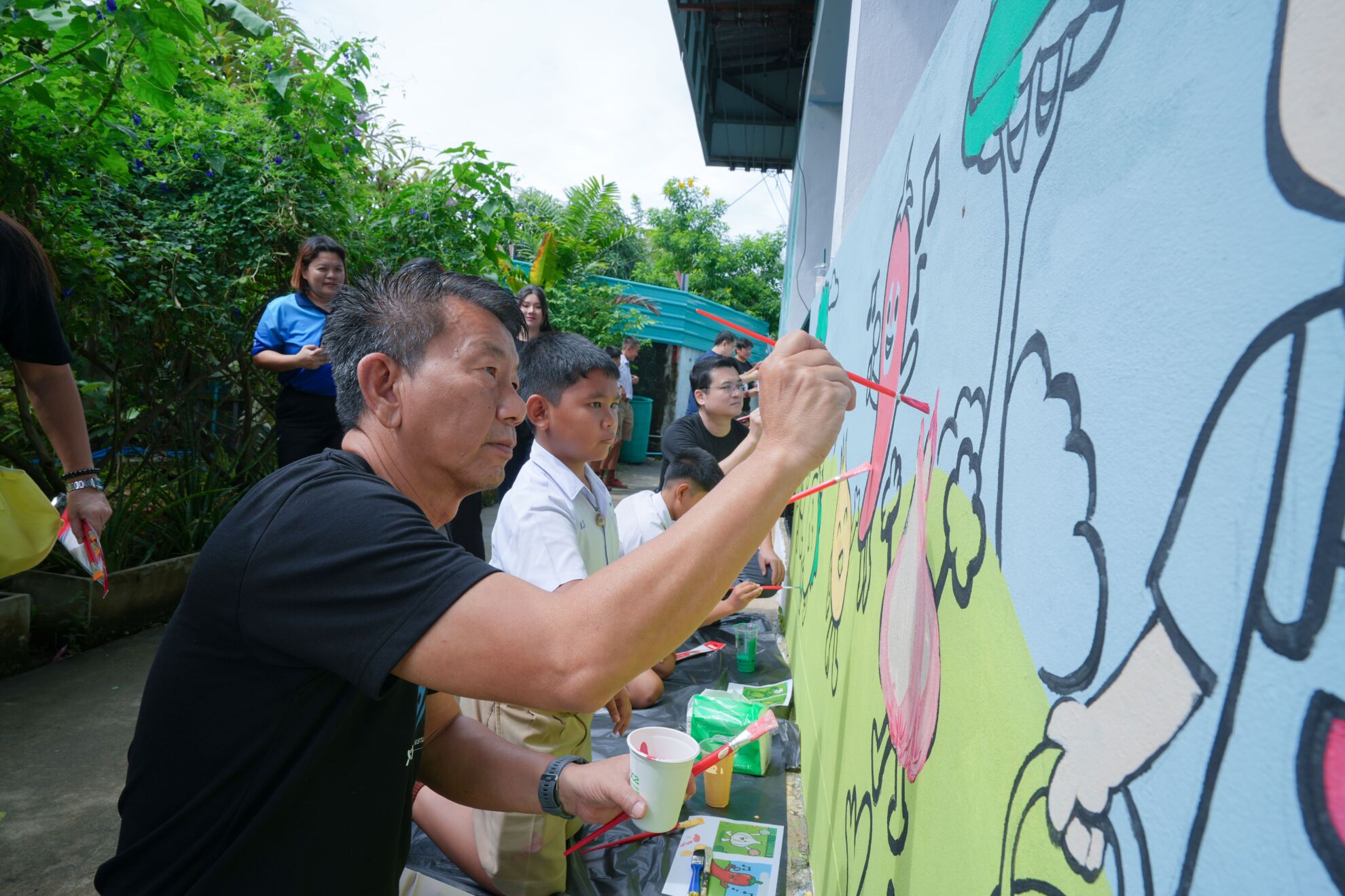 - ทาสีรั้ว และกำแพงโรงเรียน เติมสีสันให้บรรยากาศสดชื่นและน่าอยู่