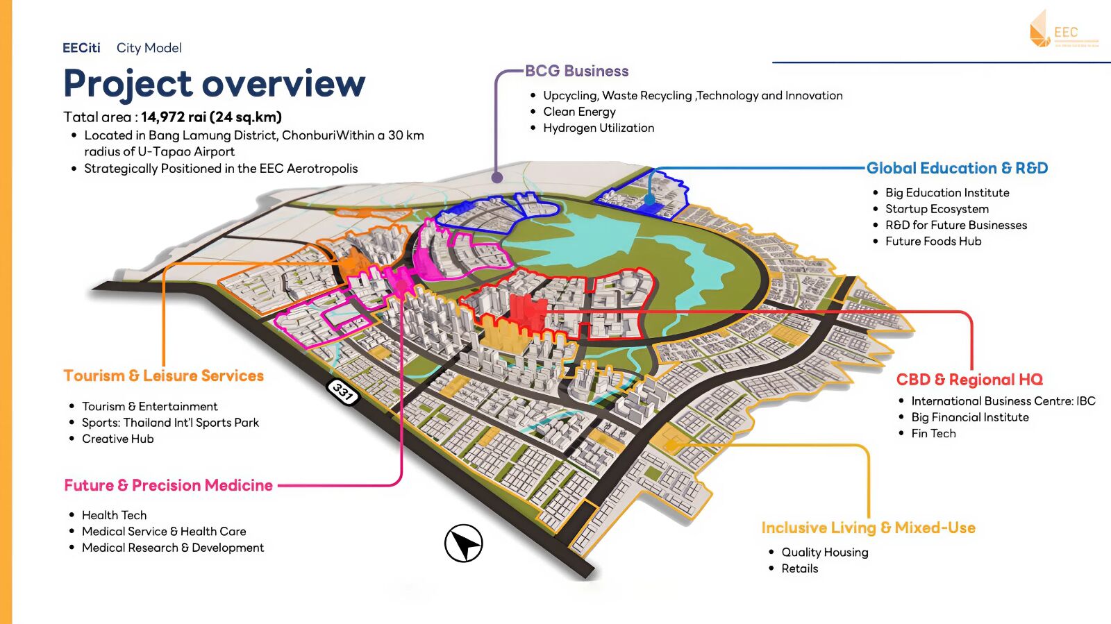สกพอ.เปิดผัง”ศูนย์ธุรกิจ EEC ปั้นเมืองใหม่น่าอยู่อัจฉริยะ”พร้อมเปิดทางเอกชนร่วมลงทุน PPPกว่า7.4 หมื่นล้านในปี’69