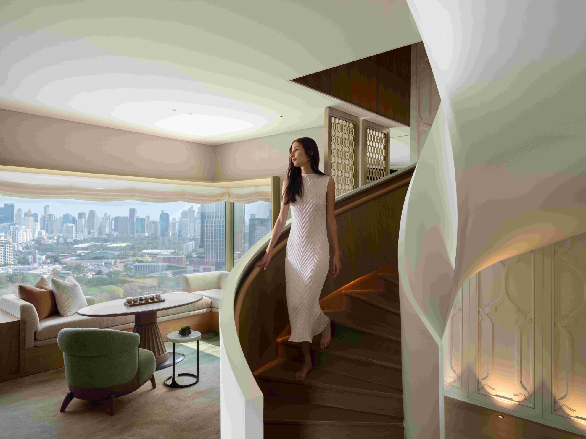 โรงแรมดุสิตธานี กรุงเทพ โฉมใหม่ ได้ผสานสถาปัตยกรรมไทยดั้งเดิม เข้ากับความร่วมสมัยได้อย่างลงตัว โดยทุกห้องพักได้รับการออกแบบให้มองเห็นวิวสวนลุมพินีผ่านกระจกเต็มบานกว้างถึง 5 เมตร พร้อมบริการด้าน wellness ครบวงจร ที่รวมทั้งสระว่ายน้ำอินฟินิตี้พูล ยิม และ Devarana Wellness ที่พร้อมมอบประสบการณ์การพักผ่อนอย่างเหนือระดับด้วยทรีตเมนต์ สปา และโปรแกรมดูแลสุขภาพเฉพาะบุคคล นอกจากนี้ โรงแรมยังได้รวบรวมประสบการณ์การรับประทานอาหารระดับพรีเมียมไว้ครบครัน ทั้งห้องอาหารอิตาเลียนคานูบี, ห้องอาหารพาวิลเลียน, คาเฟ่ ดุสิต กูร์เมต์, รูฟท็อปบาร์ The Spire, 1970 Bar และ Grand Lobby Lounge ซึ่งสะท้อนศิลปะแห่งการต้อนรับแบบไทยในบรรยากาศร่วมสมัยบนมาตรฐานการบริการระดับสากล