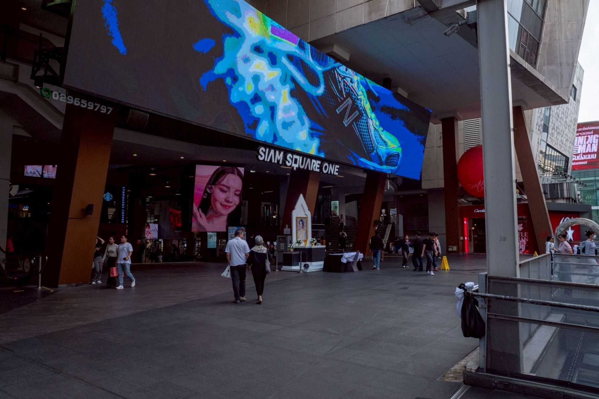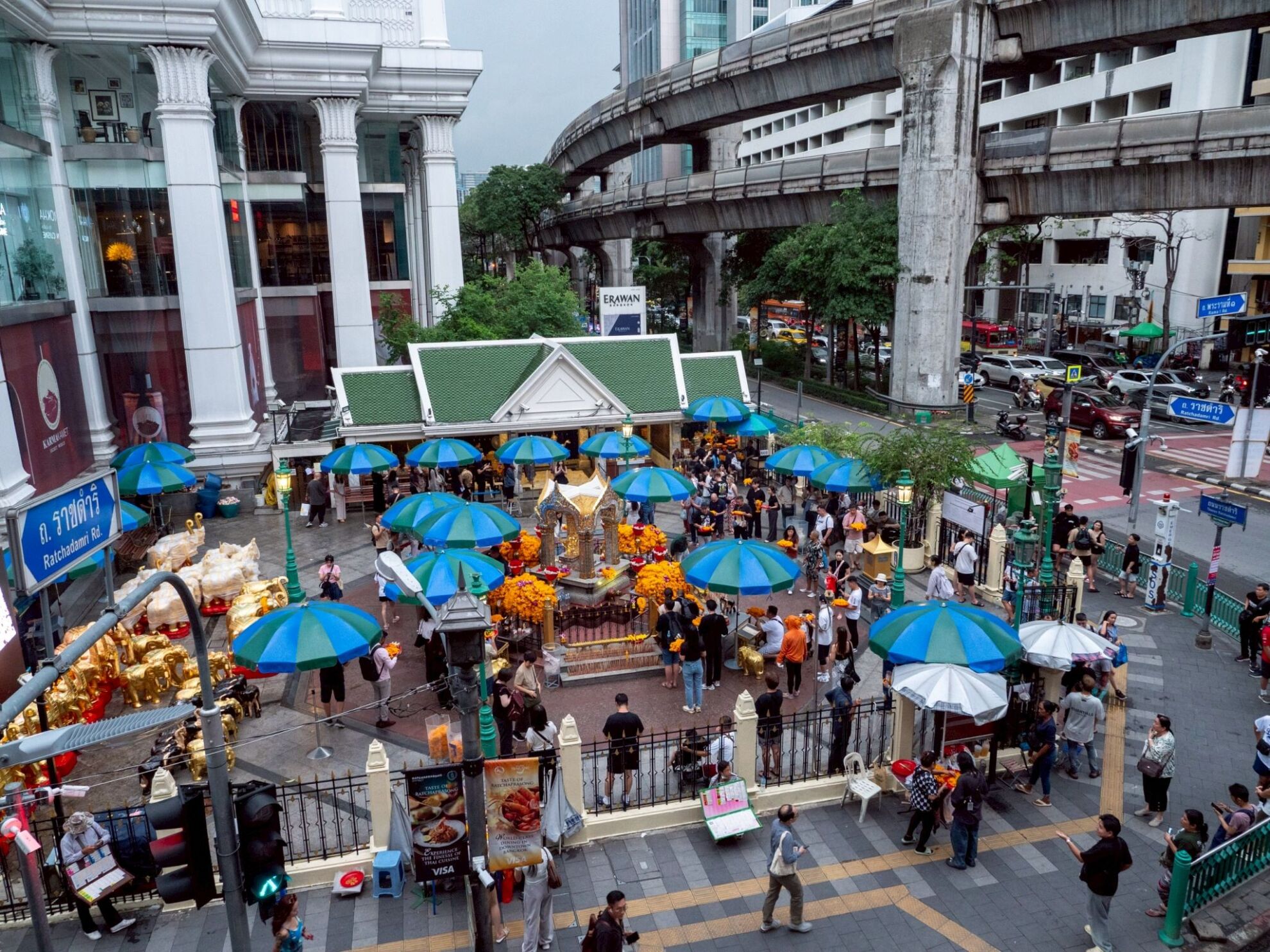 บริเวณนี้คือจุดศูนย์กลางที่มีลานกิจกรรมขนาดใหญ่และสถานที่ตั้งของสิ่งศักดิ์สิทธิ์ที่ผู้คนทั้งชาวไทยและต่างชาติเข้ามาสักการะขอพรตลอดทั้งวัน เช่น ศาลท้าวมหาพรหมเอราวัณ, ศาลพระแม่ลักษมี, ศาลพระพิฆเนศวร, ศาลพระตรีมูรติ และท้าวอัมรินทราธิราช เป็นต้น และเป็นจุดเชื่อมต่อสำคัญที่ออกจากโซนสยาม โดยให้เดินมาที่ทางออกหลักชั้น M (ฝั่งที่เชื่อมกับสถานี BTS สยาม) เมื่อเดินออกมานอกตัวห้างแล้ว ให้หันหน้าไปทางทิศตะวันออก เพื่อมุ่งหน้าไปทางหางเซ็นทรัลเวิลด์ แล้วเดินตรงไปตามทางเดินลอยฟ้า ใต้รางรถไฟฟ้า ซึ่งเป็น The Long Walk ที่ยาวมาก ถึงขนาดที่ว่าเดินจนหอบหรือเหงื่อชุ่มตัวได้ในช่วงอากาศร้อนๆ