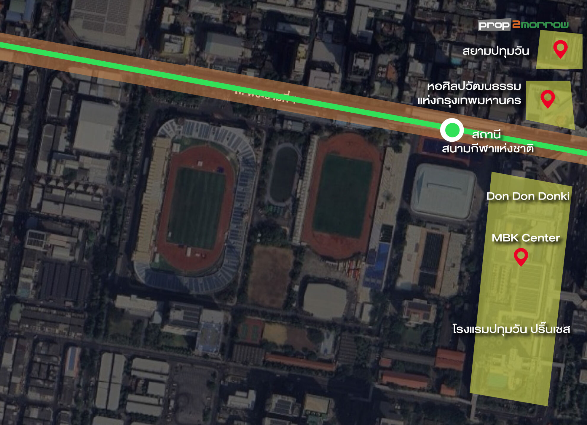 โดยจุดเริ่มต้นออกสตาร์ทตั้งแต่หัวถนนพระราม 1 ที่สถานีรถไฟฟ้าสนามกีฬาแห่งชาติ มองหาป้ายทางออกหมายเลข 3 และ 4 ซึ่งทางออกหมายเลข 4 สามารถใช้ทางเชื่อมเดินเข้าสู่ชั้น 2ของห้างเอ็ม บี เค เซ็นเตอร์ (MBK Center)หรือที่คนรุ่น Gen X และ Gen Y รู้จักกันในชื่อห้างมาบุญครอง ห้างในตำนานที่โด่งดังเรื่องร้านค้าเช่ารายย่อย สินค้าไอที โทรศัพท์มือถือ ของที่ระลึก และศูนย์อาหารราคาประหยัด โดยสามารถแวะหาอะไรทานรองท้องได้ที่ Food Court ชั้น 6 หรือจะเดินดูของที่ระลึก เสื้อผ้า และโซนมือถือได้ที่ชั้น 4