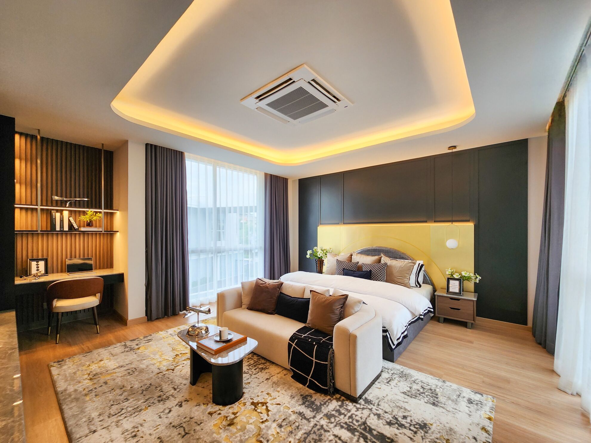 ในส่วนของชั้น 2 จะเป็นส่วนของห้องนอน ทุกห้องถูกออกแบบให้มีความเป็นส่วนตัว กำหนดทิศทางของแสงที่ตกกระทบ โดยเฉพาะห้อง Master Bedroom มีการออกแบบตกแต่งให้ดูโปร่งสบายและเปิดมุมมองสู่สวนด้านนอก เพื่อชมความเขียวขจีจากธรรมชาติที่อยู่รอบห้อง พื้นที่ถูกจัดให้ครบตั้งแต่ ”Walk in Closet โซนพักผ่อน ไปจนถึงห้องน้ำที่รับแสงธรรมชาติพอดี ๆ นอกจากนี้ ยังมีออกแบบทางระเบียงเชื่อมห้อง ซึ่งนับว่าเป็นฟังก์ชันที่ทำให้บ้าน “น่าอยู่ขึ้นจริง” ในส่วนของห้องนอนลูก ยังให้ความสำคัญกับแสงที่ดี มีความเป็นส่วนตัว และจัดฟังก์ชันครบ ดีไซน์ต่างๆ สามารถใช้งานได้เต็มพื้นที่ วางมุมหน้าต่างในทิศทางที่ได้รับแสงธรรมชาติ แต่ยังเป็นส่วนตัวด้วยการปิดกั้นการมองเห็นระหว่างบ้านตรงข้ามด้วย