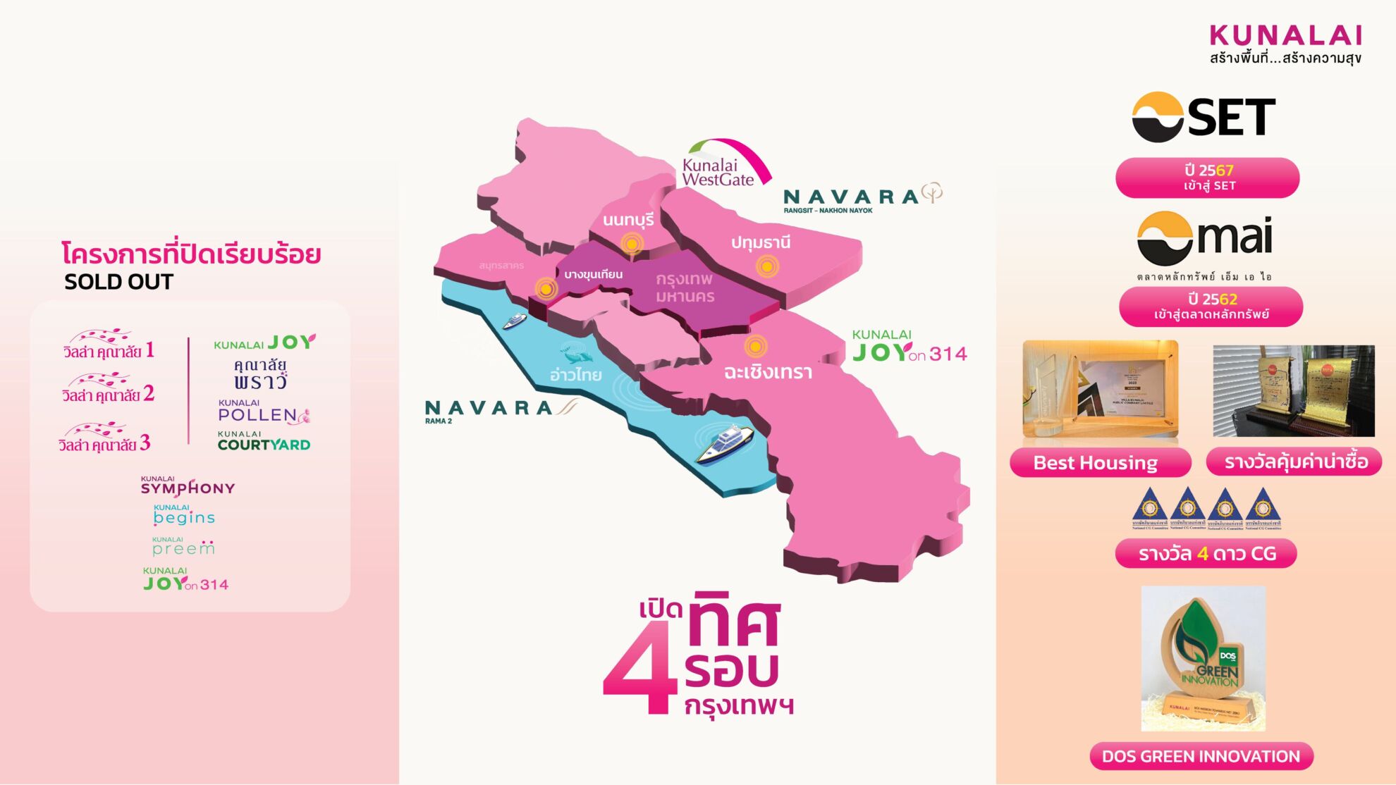 กลยุทธ์สำคัญของการพัฒนาโครงการของคุณาลัย ที่บุกตลาดอสังหาฯครบทั้ง 4 ทิศรอบกรุงเทพฯสำเร็จ ซึ่งเป็นความตั้งใจของ คุณรัตน์ – ประวีรัตน์ เทวอักษร ประธานเจ้าหน้าที่บริหาร และกรรมการบริษัท วิลล่า คุณาลัย จำกัด (มหาชน) หรือ KUN ตั้งแต่เข้ามาบริหาร คุณาลัย