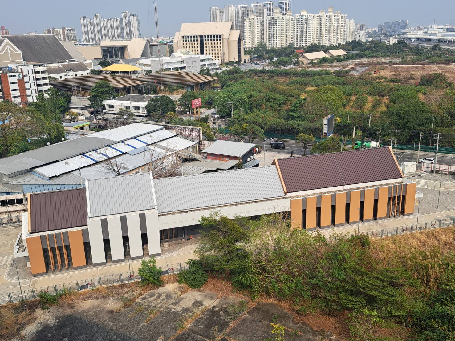 ทั้งนี้พื้นที่ก่อสร้างจริงจากพื้นที่ทั้งหมด 50 ไร่ จะมีพื้นที่ที่สามารถก่อสร้างได้เต็มรูปแบบประมาณ 48 ไร่เศษ เนื่องจากมีพื้นที่บางส่วนประมาณ 1 ไร่ 2 งาน ถูกรอนสิทธิ์จากการก่อสร้างรถไฟฟ้าสายสีส้ม ซึ่งห้ามตอกเสาเข็มลึกเกิน 3 เมตร