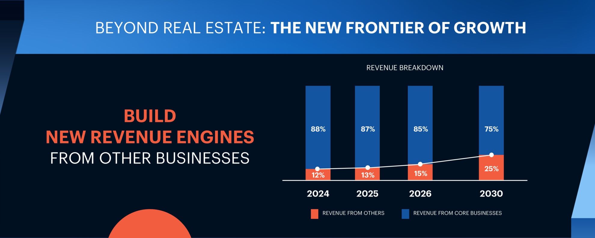 การเดินหน้ากลยุทธ์ปั้น New S-curve ใหม่ในครั้งนี้ เน้นลงทุนกับ SME ในกลุ่ม Real Sector ที่เชื่อมโยงกับคุณภาพชีวิตประจำวัน เพื่อเปลี่ยนผ่านจากการพัฒนาเพียง “โครงการที่พักอาศัย” ไปสู่การสร้าง “ชุมชนแห่งการใช้ชีวิตที่สมบูรณ์แบบ” ซึ่งในอนาคตจะส่งผลให้สัดส่วนรายได้ของ แสนสิริ เปลี่ยนไปตั้งเป้าในปี 2030 ครองสัดส่วนถึง 25%