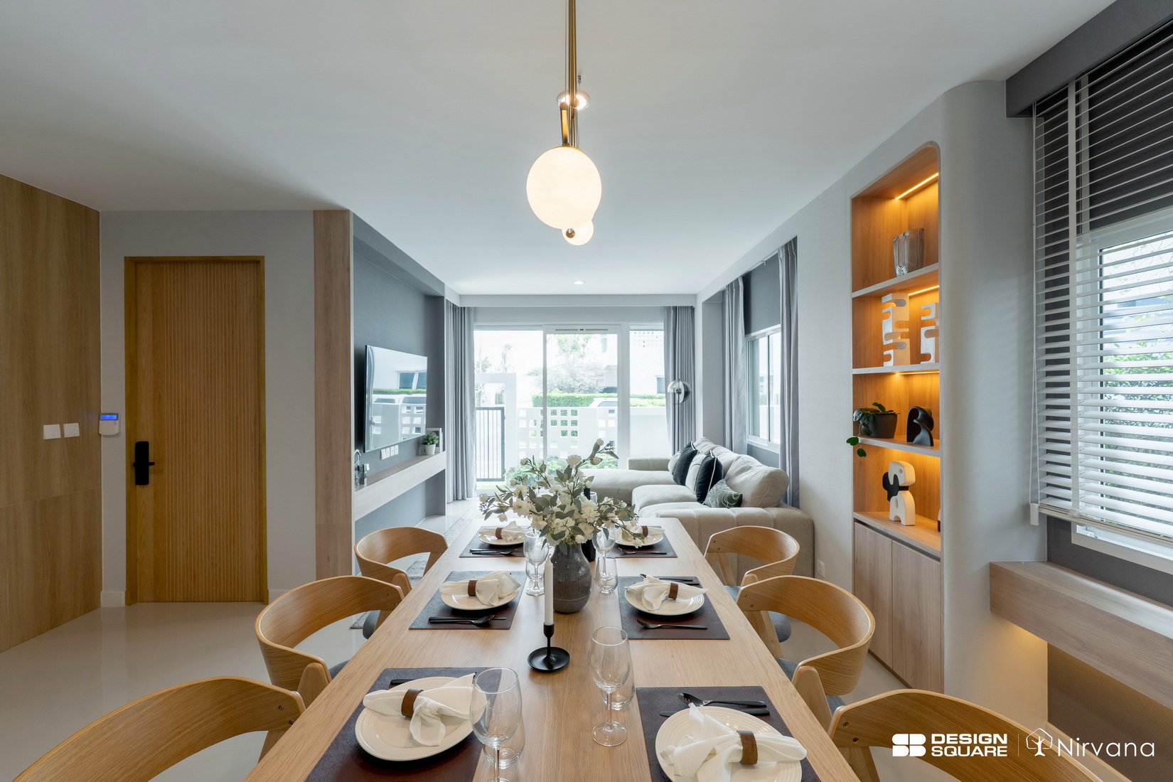 โดยเริ่มต้นที่โครงการ Nirvana Absolute Krungthep Kreetha เป็นบ้านเดี่ยว 3 ชั้นระดับลักชัวรี พัฒนาโดยให้ความสำคัญกับพื้นที่ ผ่านการออกแบบที่เปิดรับแสงธรรมชาติ การไหลเวียนอากาศ และบรรยากาศที่เอื้อต่อความสงบและความเป็นส่วนตัว ภายใต้กรอบแนวคิด Functional Living ในส่วนของงานตกแต่งบ้าน SB Design Square เข้าไปมีบทบาทตั้งแต่การกำหนดแนวทางการตกแต่งภายใน การคัดเลือกและจัดวางเฟอร์นิเจอร์ลอยตัว ไปจนถึงการจัดองค์ประกอบพื้นที่และการเลือกสรร Prop เพื่อสร้างบรรยากาศที่สมบูรณ์ในทุกรายละเอียด ทำให้บ้านที่ส่งมอบมีความพร้อมทั้งด้านความสวยงาม ฟังก์ชันการใช้งาน และประสบการณ์การอยู่อาศัยตั้งแต่วันแรกที่เข้าอยู่