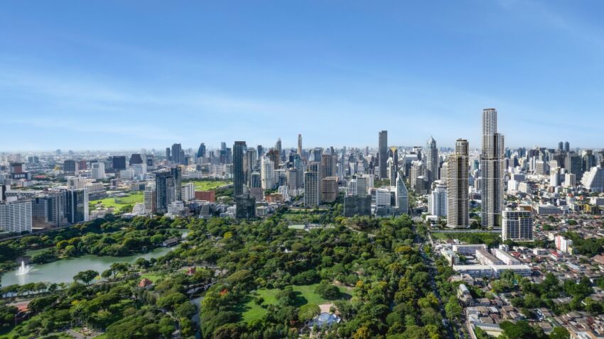 สำหรับผลงานการออกแบบสถาปัตยกรรมโดย Foster + Partners ที่ดำเนินงานผ่านบริษัทย่อยในไทย คือ บริษัท เอฟแอนด์พี (ประเทศไทย) จำกัด ได้รับแรงบันดาลใจจากการจัดวางพื้นที่และความสงบจากเรือนไทยดั้งเดิม พร้อมตีความใหม่ผ่านมุมมองร่วมสมัย โดยตัวอาคารทั้งสองถูกออกแบบโดยคำนึงถึงความสะดวกสบาย การรับแสงธรรมชาติ ความโปร่งโล่ง พร้อมเปิดรับวิวแบบพาโนรามาของสวนลุมพินีและสวนเบญจกิติ
