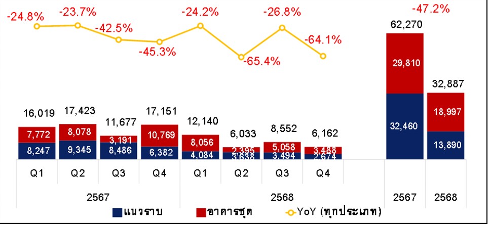 โครงการเปิดตัวใหม่กรุงเทพฯ–ปริมณฑลปี’68 ลดลงหนัก–47.2% เหลือ32,887 ยูนิต