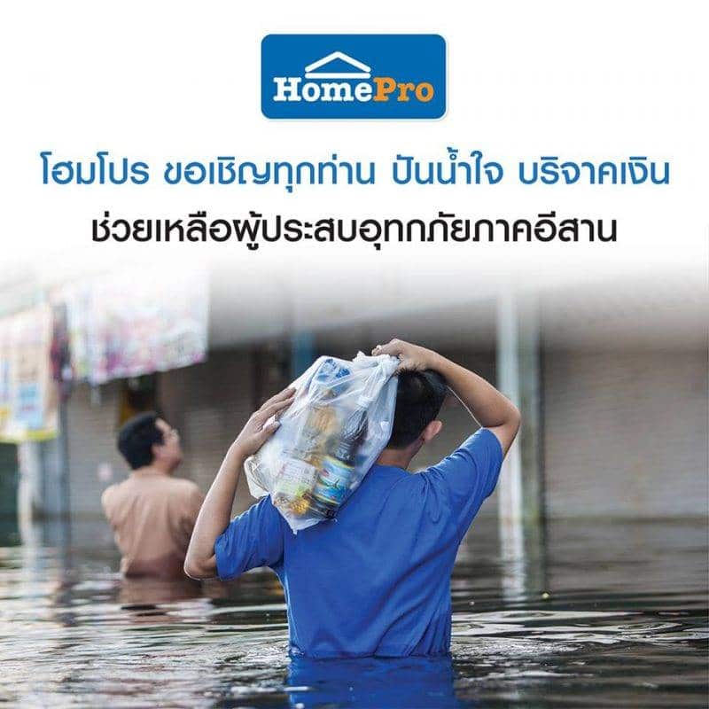 โฮมโปร มอบเงิน 5 แสนาท ช่วยเหลือผู้ประสบภัยน้ำท่วมทางภาคอีสาน ผ่านมูลนิธิอาสาเพื่อนพึ่ง (ภาฯ) ยามยาก สภากาชาด และให้ความช่วยเหลือครอบครัวพนักงานของโฮมโปร ที่ประสบภัยครั้งนี้ พร้อมเตรียมแผนช่วยเหลือบูรณะหลังน้ำลด นางสาวสิริวรรณ เสริมชีพ ผู้จัดการทั่วไปสายโฆษณา และกิจกรรมพิเศษ บริษัท โฮม โปรดักส์ เซ็น…