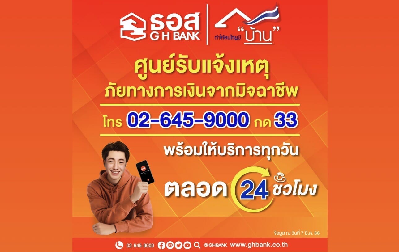 ธอส. เปิดศูนย์รับแจ้งเหตุภัยทางการเงินจากมิจฉาชีพ ตลอด 24 ชั่วโมง